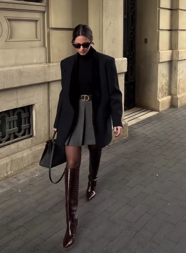 Η μίνι φούστα με πιέτες είναι ένα κομμάτι που θυμίζει κολεγιακά looks και είναι πολύ χαριτωμένη. Μπορείς να τη φορέσεις από πάνω με ζιβάγκο ή ακόμα και με φούτερ. Σαν παπούτσι όμως προτίμησε ένα ζευγάρι μπότες μέχρι το γόνατο που θα κάνουν το σύνολο να μοιάζει λιγότερο “γυμνό” κι εσένα να μην κρυώνεις. Δες επίσης: 5 Τρόποι να φορέσεις το καφέ χωρίς να δείχνει βαρετό