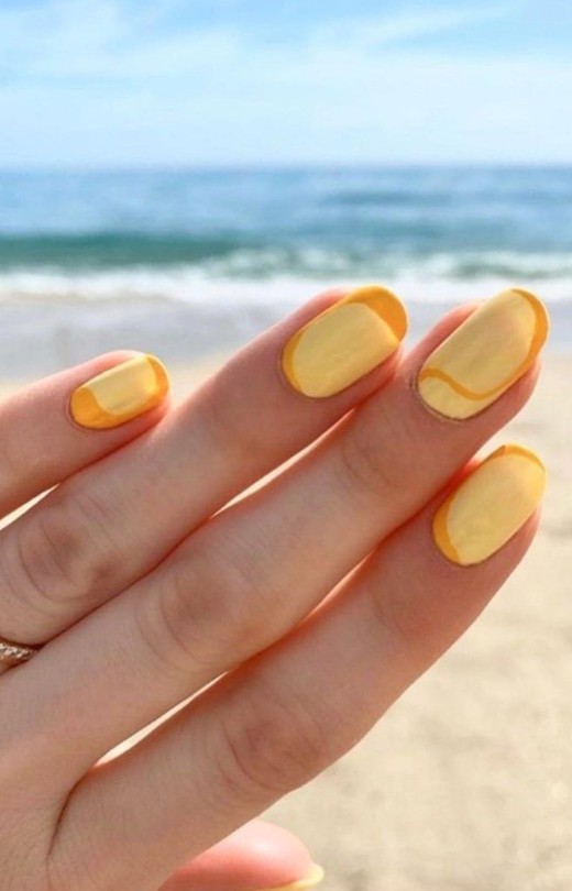 Μια πιο γλυκιά και λαχταριστή επιλογή είναι το marble cake. Ένα σχέδιο που είναι εμπνευσμένο από αυτό το γλυκό και ταιριάζει απόλυτα με τις αποχρώσεις butter yellow, καφέ και λευκό της βανίλιας. Οι απαλές ροές που μπλέκονται μεταξύ τους θυμίζουν φρεσκοψημένο κέικ. Ταιριάζει σε κοντά και μακριά νύχια κυρίως σε οβάλ και αμυγδαλωτό σχήμα. Για μια πιο μοντέρνα προσέγγιση και ακολουθώντας τις τάσεις συνδύασε το yellow butter με καφέ mocha. Δες επίσης :Σε ποιες γυναίκες πάνε τα αμυγδαλωτά νύχια!
